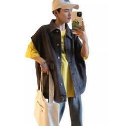 جاكيت دنيم بدون أكمام فضفاض غير رسمي متعدد الاستخدامات للجامعات للربيع والخريف ، جاكيت نسائي Hong Kong