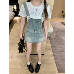 شورت نسائي للربيع والصيف بتصميم جذاب من قطعتين من الدنيم صغير عالي الخصر غير منتظم بنطال تنورة بحمالات بتصميم مزيف