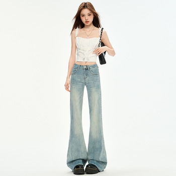 Açık mavi kadın yaz alevlendi pantolon düşük bel zayıflama elastik kot yapışmasını değil bacaklar gevşek amerikan tarzı